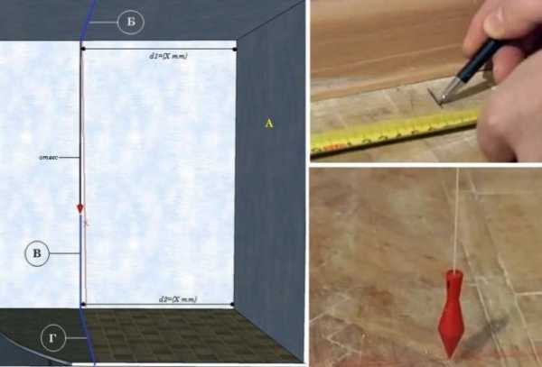Прежде всего, выполняется разметка, здесь учитывают толщину материала.Непременным условием станет точность, для этого используют лазерный уровень.