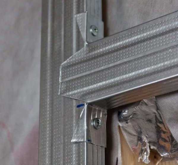 Этапы установки:- по готовым разметкам укрепляется направляющий профиль UW дюбель-гвоздями с шагом в 50 см на уплотнительную ленту, избавляющую углы от трещин.;