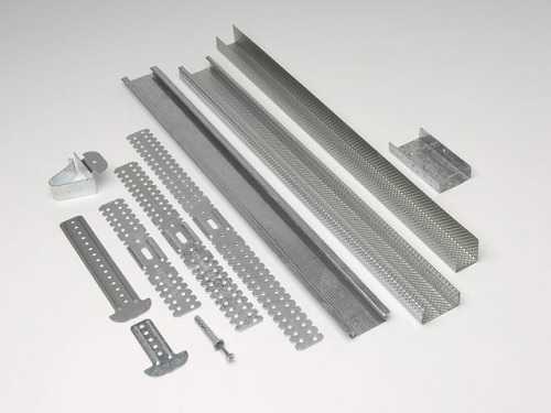 Металлические профили для монтажа гипсокартона изготавливают холоднопрокатным способом из стальной ленты, имеющей цинковое покрытие. Толщина ленты варьируется от 0,56 до 0,6 мм. К группе основных изделий относятся: направляющий профиль (ПН), направляющий профиль для потолка (ПНП), стоечный профиль (ПС), потолочный профиль (ПП), а также угловой профиль (ПУ).