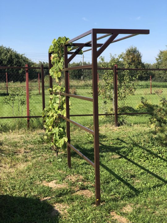 Также следует помнить про обработку деревянных опорных элементов медным купоросом. Их нужно обработать в местах заливки бетона.Получите красивую и практичную арку для винограда, но еще и будете любоваться красотой и получите идеальную тень в жаркий летний день.Каркас под виноград своими руками: как сделать своими руками виноградные конструкции из металла и профильной трубы