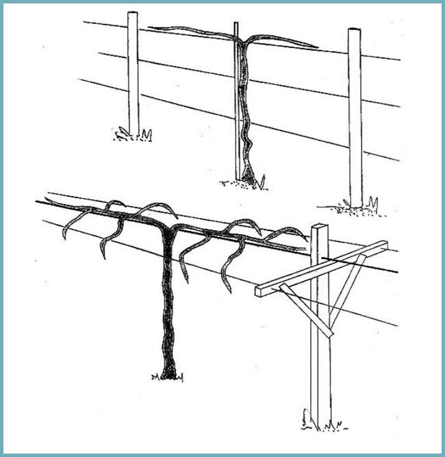 - Одинарные. Положительные стороны — дешевизна, хорошая вентиляция листвы, равномерное созревание гроздьев, свободный доступ для проведения работ (обрезки, формирования кроны).