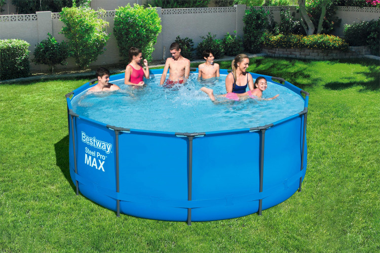 Bestway Steel Pro MAX 56420 с набором серый/синийBestway Steel Pro MAX 56420 с набором серый/синий. Фото: yandex.market.ruКруглый каркасный бассейн с оптимальной глубиной и размером. Чаша изготовлена из трёхслойного полимера, который обладает повышенной прочностью. Материал, из которого сделан каркас – оцинкованная нержавеющая сталь, а значит, владелец может не опасаться появления ржавчины. В комплект входит и лестница для большего комфорта отдыхающих.