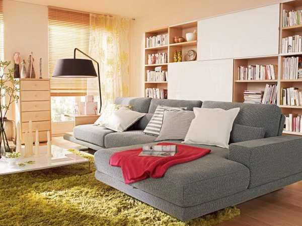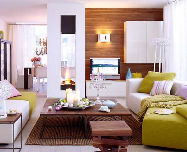 К примеру если диван светлый пусть на нем будут разноцветные маленькие подушки, в интерьер отлично впишутся разнообразные журнальные столики.