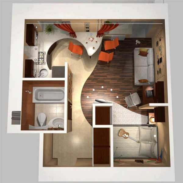 Дизайн однокомнатной квартиры — 105 фото, 10 проектов интерьеров