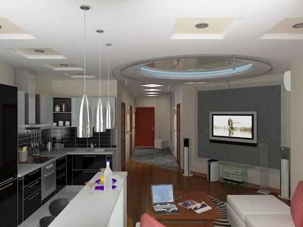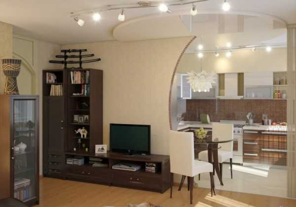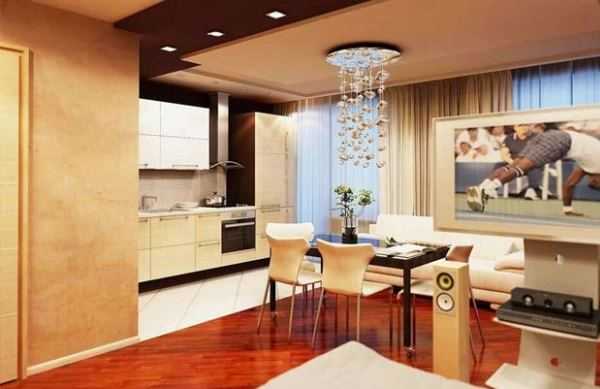 Один из самых распространённых вариантов расширения жилого пространства в квартире, имеющей только одну комнату, – объединение гостиной и кухни. Перегородки сносятся, и получается студийная планировка.
