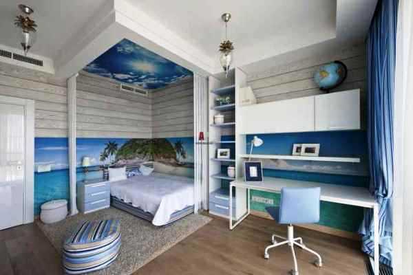 Хорошо, что только одна стена оклеена цветными обоями, а остальные белые. В противном варианте, комната казалась бы меньше и стала бы слишком темной.
