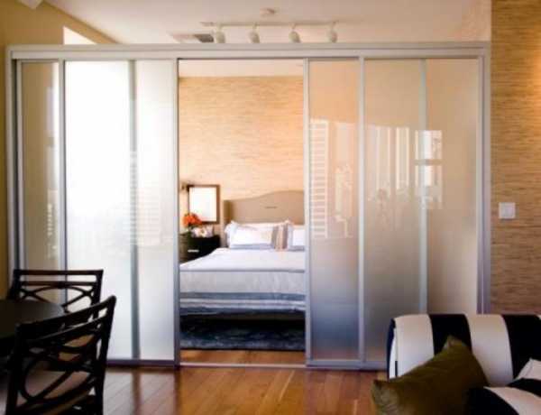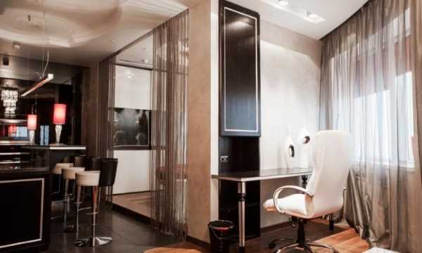 Чтобы придать интерьеру функциональности, необязательно сносить стены. Можно выделить зоны для отдыха и работы и другим способом. Зону для сна выделяют при помощи тканевых драпировок или легких перегородок с витражными вставками.