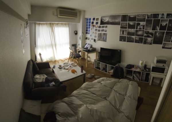 В единственной жилой комнате площадью 12 кв.м Рон разместил все необходимое: двуспальную кровать, рабочий стол и мягкий уголок. Крохотная кухня занимает отдельное помещение. Особую гордость у Рона вызывают светильники и мебель, подобранные на блошиных рынках.