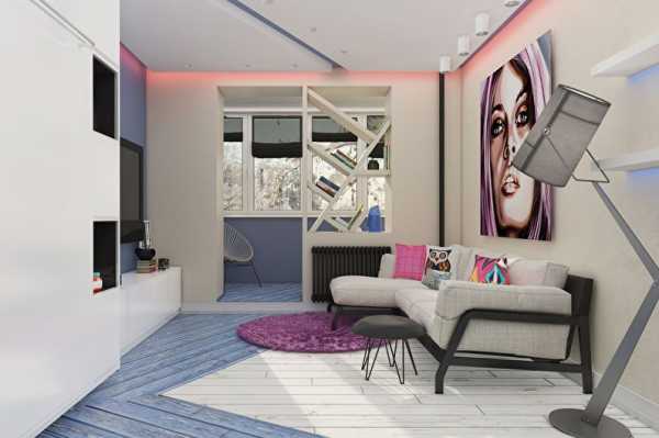 Стал популярен и еще один способ увеличения жилой площади – присоединение лоджии. Чтобы это сделать, убирают часть стены и, конечно же, это возможно только при условии теплого балкона. За счет этого комната станет немного больше.