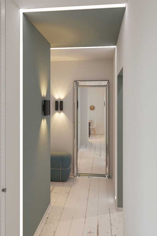 Вам подойдут современные светильники, их можно разместить на потолке, а так же повесить на стену, при этом люстра должна быть не громоздкой. Если вы делаете большой акцент на расширение можете использовать зеркала именно они отлично расширяют пространство.