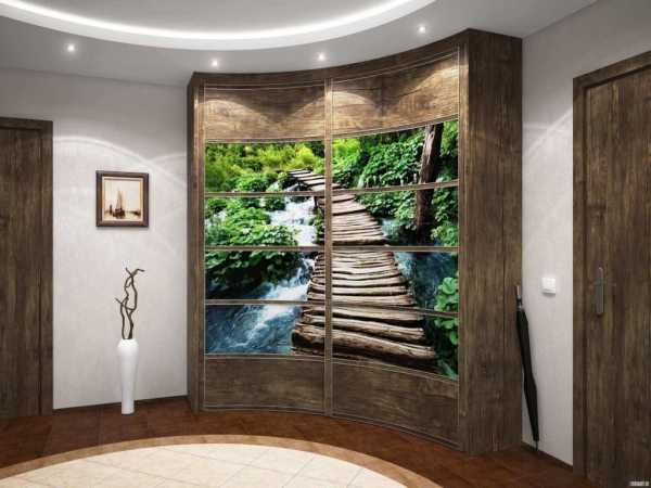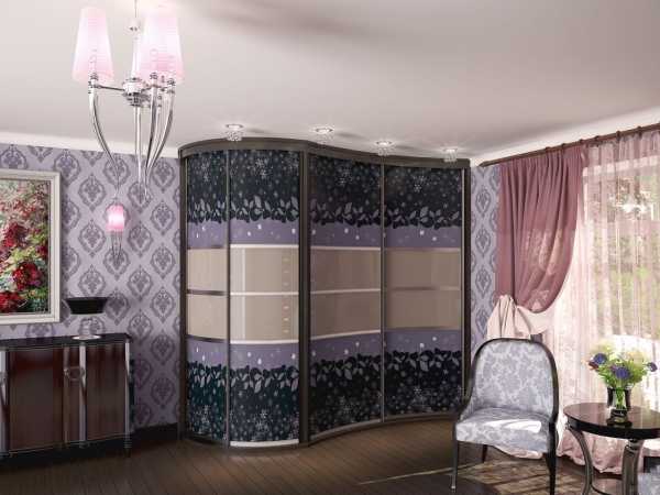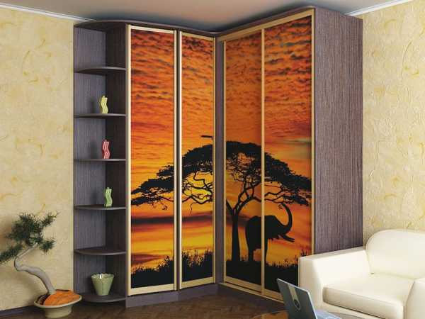 Для современного дизайна разработали угловые шкафы с необычной поверхностью. Она может содержать красивые изображения нанесенные с помощью фотопечати. В последнее время на дверях конструкции применяют элементы кожи и меха. Такие стильные угловые шкафы, считаются креативным акцентом в интерьере.