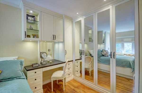 Если занять две прилегающие стены под угловой шкаф купе, вещей поместится много