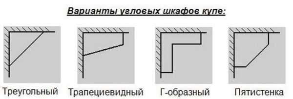 Кроме различий по модели, есть еще градация в зависимости от формы. Ниже представлены фото угловых шкафов купе.
