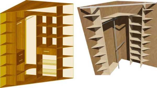 Корпусный угловой шкаф купе имеет собственные стенки, пол и потолок
