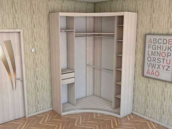 Во время выбора непременно должно учитываться наполнение углового шкафа купе. От него зависит, какое количество разных элементов можно будет хранить в этой конструкции. Рекомендуется заранее определиться, что именно будет находиться в шкафу, чтобы подобрать модель, способную вместить все необходимые предметы.