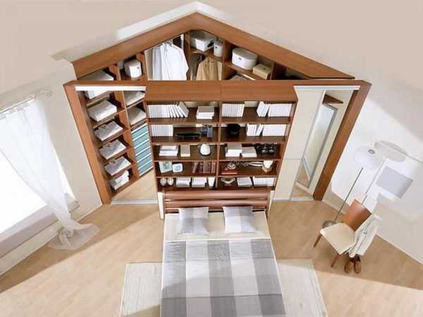 Сложность представляет использование узких треугольников в диагональных и трапециевидных моделях. Тут обычно располагают полки. Это оптимальный вариант, ведь всегда есть вещи небольшого размера, которые на этих полках можно будет хранить.