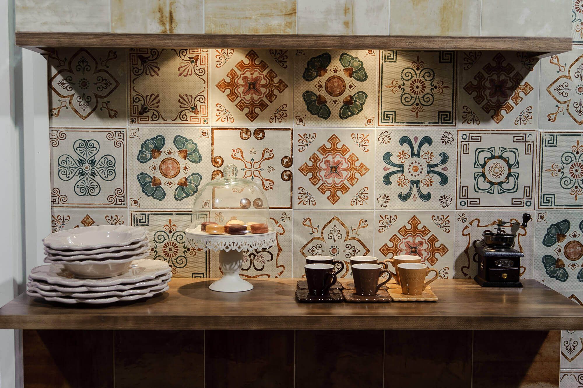 Оригинальный стильКухни в стиле кантри склонны к беспорядку и очаровательному несоответствию мебели и аксессуаров. Отразите это на своей кухонной плитке, выбрав случайные узоры — нам нравится эта коллекция от Original Style, которая создает эффект гобелена.