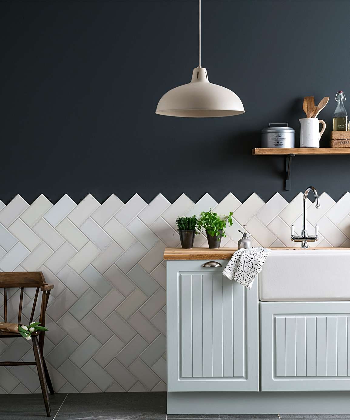 Оригинальный стильМы наблюдаем возвращение встроенной кладовой в современные деревенские кухни, и плитка здесь может быть использована очень эффективно. Простая белая плитка — это все, что вам нужно, чтобы обеспечить фон для ассортимента эмалированной посуды, банок и жестяных банок, а глянцевая глазурь поможет отразить свет, если ваша кладовая находится в темном углу.