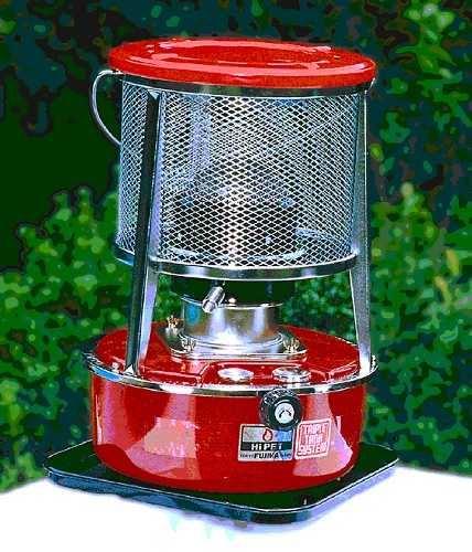 Керосиновые обогреватели для палаток давно используются туристами. Аппарат отличается средним уровнем пожарной опасности. В приборах данного типа керосин из бака для горючего поступает на фитильное устройство, где и сгорает. Пламя локализовано достаточно компактно, нагревает цилиндр теплоизлучателя. Поджиг может осуществляться как обычной спичкой, так и пьезоэлементом в дорогих моделях.