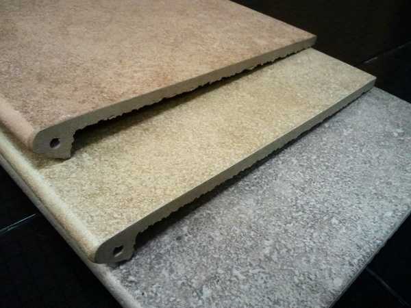 Выделяются 2 основных вида — это ступень с насечками и с носиком. Первый вид является не дорогой и продается в квадратных метрах. На такие ступенях наносят насечки для противоскользящего эффекта.