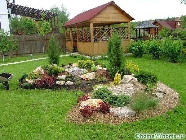 - Горку надо делать так, чтобы она была пропорциональна всему садовому участку.