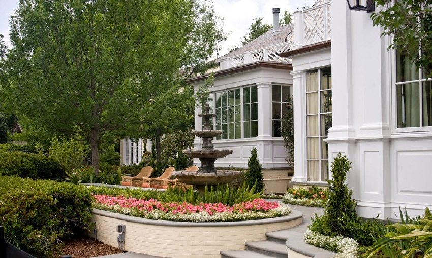 Чтобы придать вашему дизайну дополнительную нотку спокойствия, рассмотрите возможность установки небольшого водопада прямо в центре кровати. Это не только создаст фокус для вашего переднего двора, но и обеспечит успокаивающий звук, которым вы будете наслаждаться. С таким дизайном клумбы ваш передний двор станет предметом зависти соседей.