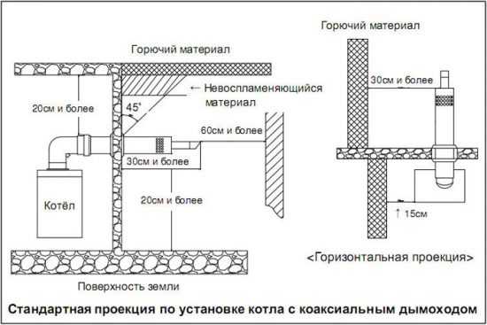 Чтобы организовать надежный и безопасный дымоотвод, нужно придерживаться конкретного свода правил и норм монтажа коаксиальной трубы.