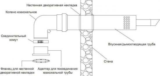 Использование коаксиальной трубы предполагает целый ряд плюсов: