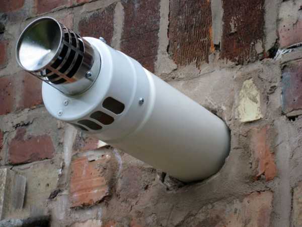 Вот один из вариантов: в стене делают отверстие и вставляют в него гильзу из асбоцементной трубы. Затем пространство между поверхностью коаксиальной трубы и гильзой заполняют асбестовым шнуром. Все элементы коаксиального дымохода должны быть изготовлены в промышленных условиях и соответствовать установленным стандартам.