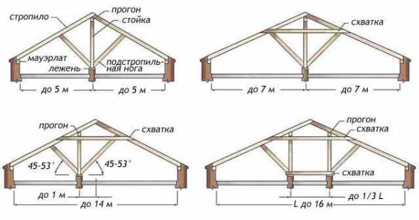 Для того чтобы разобраться в изобильном разнообразии конструкций и в возможностях их компоновки, рассмотрим основные типы стропильных систем и соответствующие им схемы.