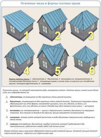 Скатную крышу упрощенно можно представить как совокупность скатов – плоскостей, по которым «скатывается» атмосферная вода. Скаты формируются ребрами стропильных ног – главных элементов стропильной системы. Классификация скатных крыш и соответствующих им стропильных систем производится в зависимости от количества и конфигурации скатов. Согласно обозначенным признакам в их рядах числятся: