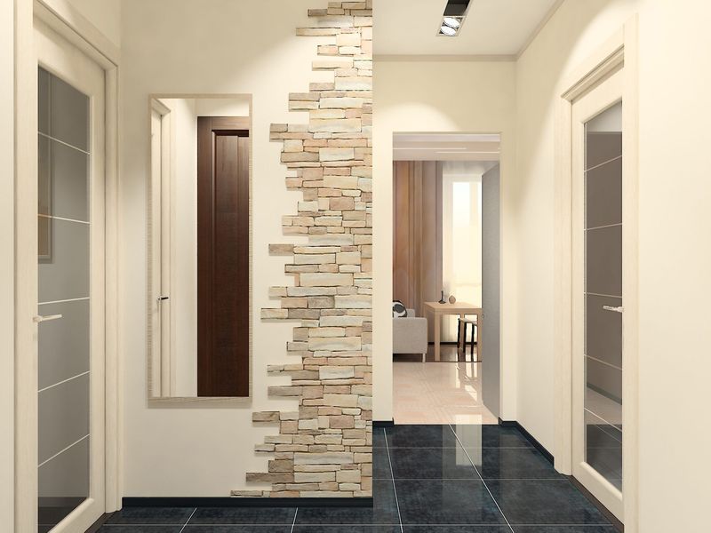 Внимание! Для того чтобы коридор не стал «каменным подземельем», важно аккуратно применять камень в отделке.