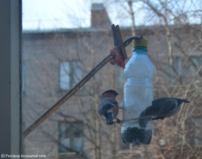 Готовую кормушку с продуманной защитой от голубей обнаружить так и не удалось. Поэтому приходится каждый год изобретать свой «велосипед».
