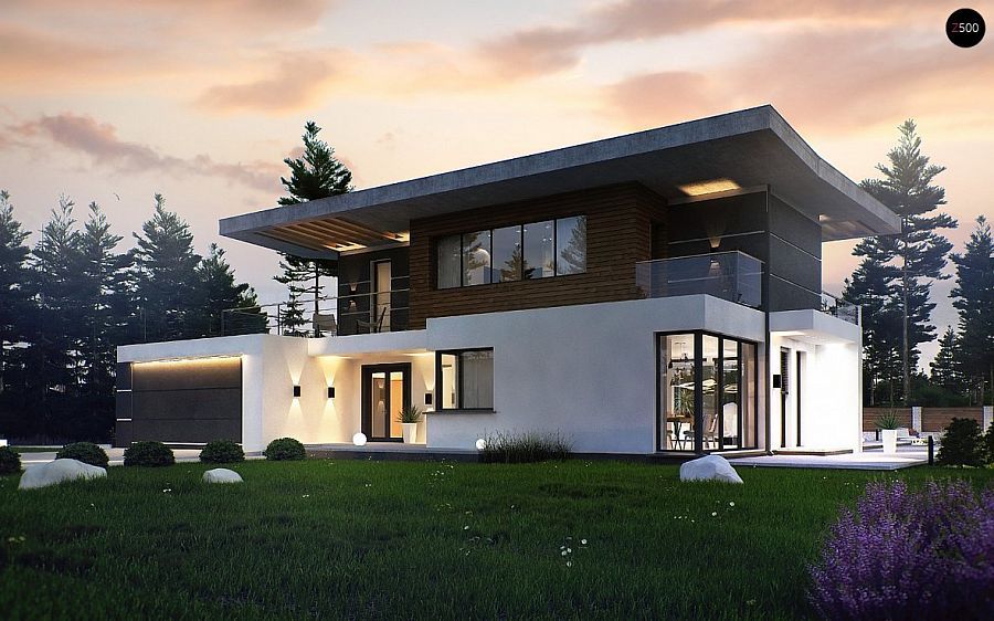 - Стильный современный внешний вид, привлекательный дизайн дома.