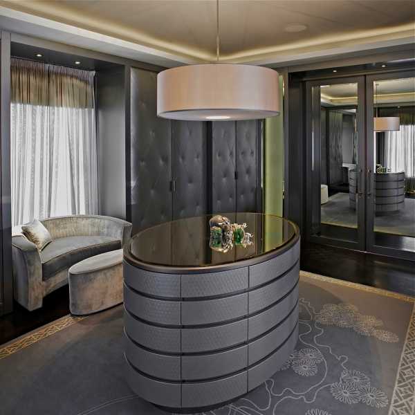Совет. Выбирайте такой остров, чтобы даже при условии выдвижения всех ящиков, вам было комфортно перемещаться по гардеробной, не задевая мебель.