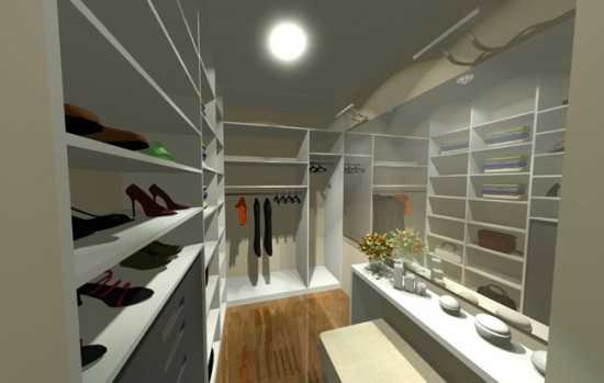 Если комната неудобна своими параметрами, например, когда она неуютна за счет собственной длины, гардеробная скрасит эту деталь, зрительно укоротив помещение и сделав его более удобным. Пятиугольные комнаты или другие формы помещения не всегда удобны для размещения мебели, и в таких случаях гардеробная в каком-либо из углов становится не только функциональным помещением для одежды и обуви, но и частью интерьера.