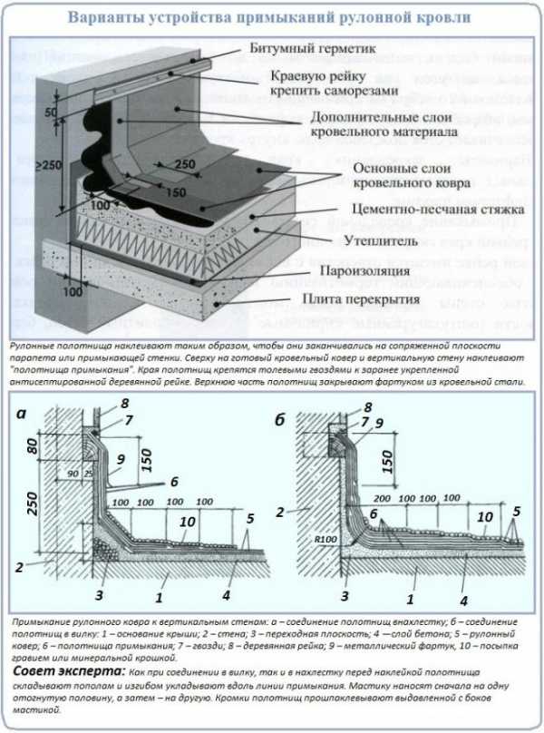 - Вертикальные стенки парапетов и примыканий оклеиваются горизонтальными полосами стеклосетки на высоту примерно 30см;