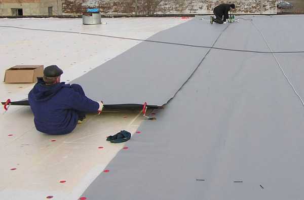 Если требуется покрыть крышу со сложной конфигурацией, подойдет эластичный материал ЭПДМ. Стелют мембрану на бетонную стяжку, на выравнивание из доски, фанеры, ОСП листов, на ж/б плиты и старую гидроизоляцию.
