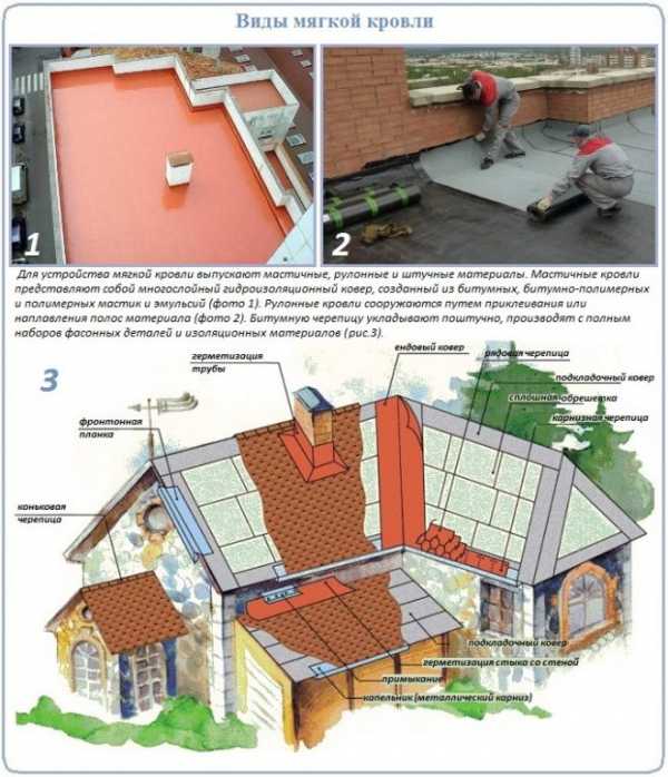 При обустройстве мягкой кровли используются следующие виды материалов: