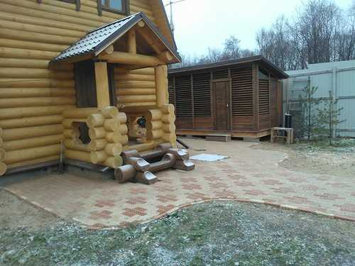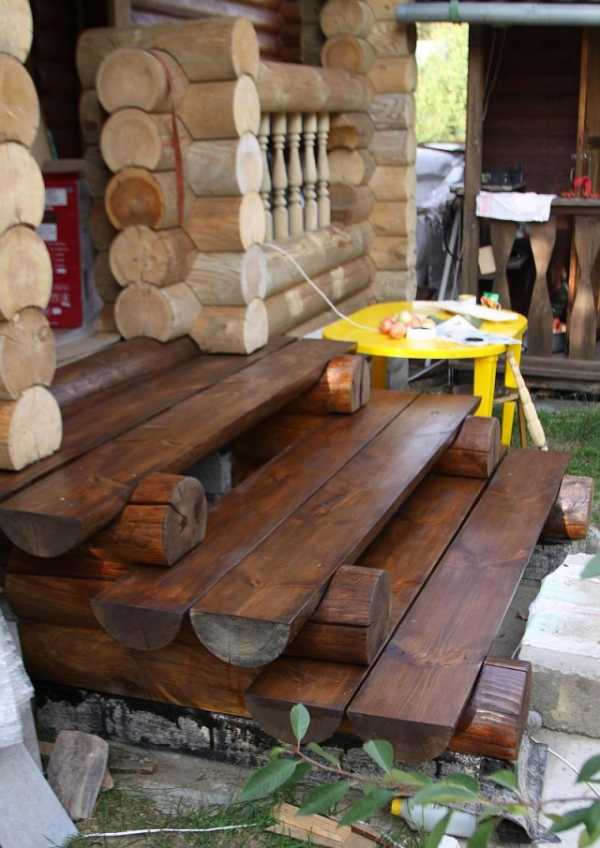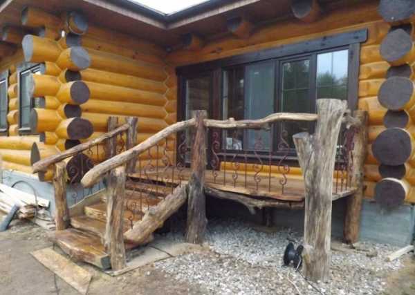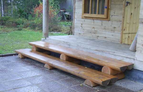 обустройство крыльца дома, ступени для дома из бревна, крылечко из бревна