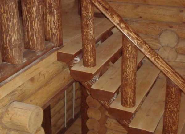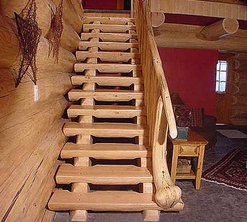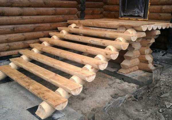 Наглядный пример лестницы из бревен, которую можно пристроить к входу