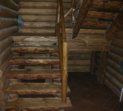 В нашей пристройке лагами, косоурами и ступенями служат одни бревна.