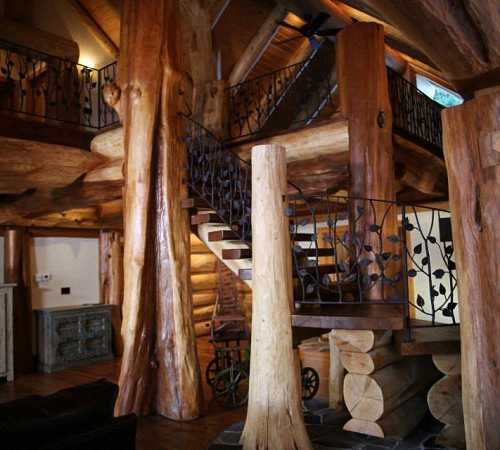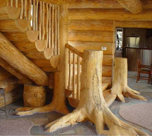 Данная конструкция используется как внутри помещения, так и снаружи. Бревна выглядят достаточно грубо, однако если их правильно соединить между собой и обработать, можно получить оригинальную конструкцию, которая станет украшением любого дома.