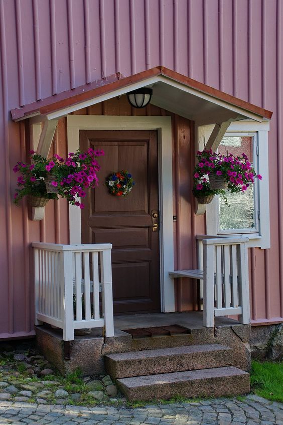 Всем знакомый метод оформления крыльца, который придаст уюта даже крохотной площадке перед входом.