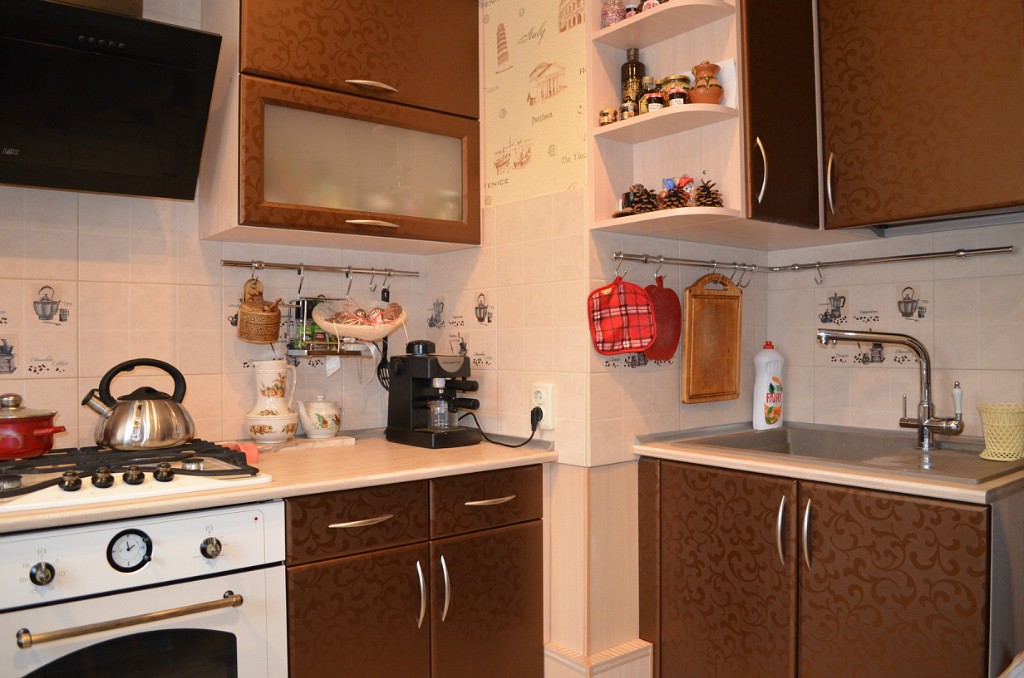 Всегда хочется, закончив ремонт кухни, фото о проделанной работе показать своим друзьям и знакомым. Вот тут и можно увидеть на этих фотокадрах все огрехи и недочеты, возникшие при оформлении этого маленького помещения.