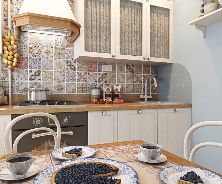 Учитывая, что на маленьких кухнях предметов быта бывает столько же, сколько и на больших, следует разгрузить кухонное пространство от темного цвета. Стены в таком помещении обязательно должны быть светлые с преобладающим мелким рисунком. Крупные орнаменты и узоры зрительно сузят пространство и придадут кухне вид маленькой коробочки. Но визуальное расширение может быть достигнуто и при использовании ярких цветов.