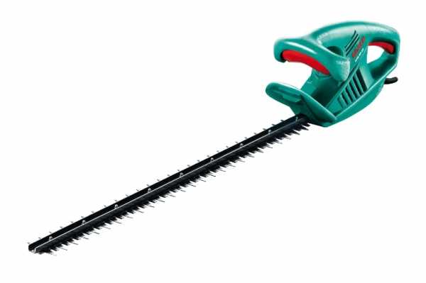 - Для стрижки широких и высоких кустарников стоит выбрать, например, Bosch AHS 65-34 с большим ножом.