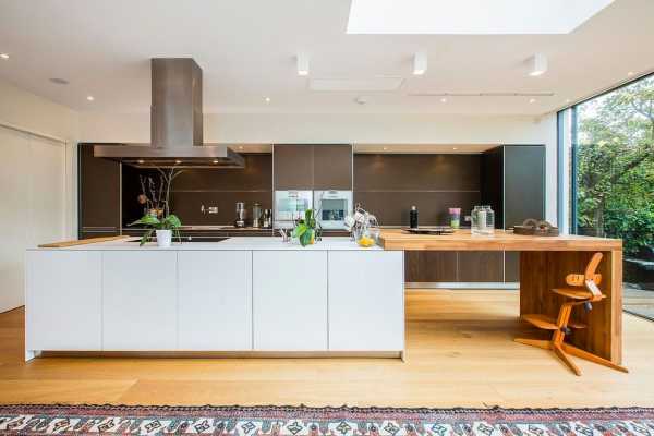 Кухня в стиле модерн с барной стойкой из дерева