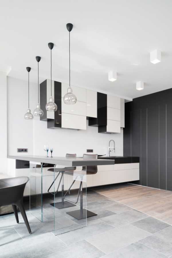 Черно-белый интерьер современной кухни