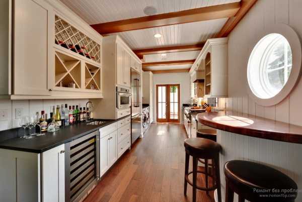 Дизайн параллельной кухни с барной стойкой
